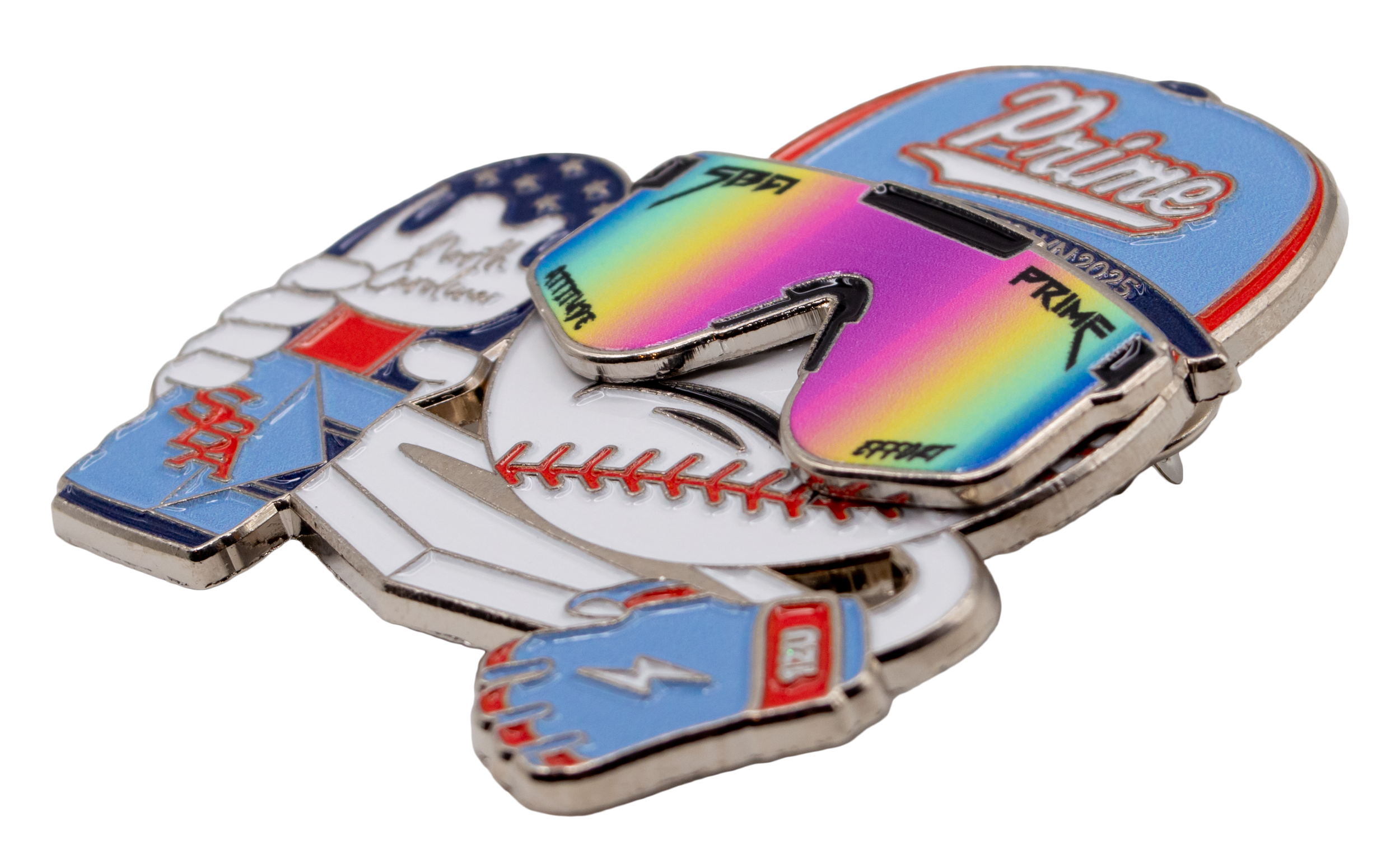 Soft enamel is the most common type of pin that is traded amongst sports teams. You can add danglers, spinners, sliders, blinking LED lights, glitter, or glow as well as change the plating or enamel to make it special.